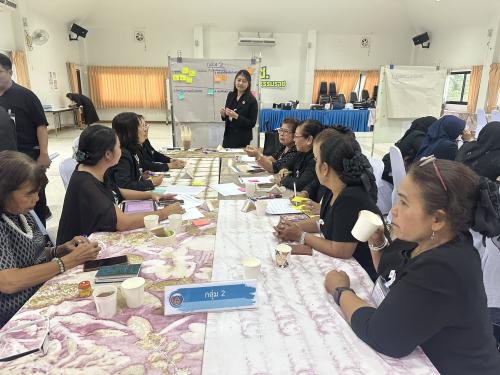 ✨ช่วงบ่าย เวลา 13.00 น. นางสาวนิภา ทองก้อน ผู้อำนวยการสำนักเสริมสร้างความเข้มแข็งชุมชน ได้พบปะพูดคุยกับคณะกรรมการพัฒนาสตรีภาคใต้ พร้อมเปิดโอกาสให้ประธานคณะกรรมการสตรีจังหวัดทั้ง 14 จังหวัด ร่วมแลกเปลี่ยนความคิดเห็นอย่างใกล้ชิด จากนั้นได้ดำเนินกิจกรรมแบ่งกลุ่ม 4 กลุ่ม และจัดทำแผนปฏิบัติการ โดย นางพนารัตน์ มาตย์สมบัติ ผู้อำนวยการกลุ่มงานส่งเสริมผู้นำชุมชนและองค์กรชุมชน เพื่อระดมความคิดเห็นในประเด็น “เหลียวหลัง แลหน้า” เพื่อแลกเปลี่ยนประสบการณ์ มุมมอง และแนวทางการขับเคลื่อนงานขององค์กรสตรี ก่อนนำเสนอผลการระดมความคิดเห็นร่วมกันอย่างเป็นรูปธรรม และร่วมกันจัดทำแผนปฏิบัติการเพื่อเป็นแนวทางในการขับเคลื่อนงานพัฒนาสตรีให้มีความเข้มแข็งและยั่งยืนต่อไป
