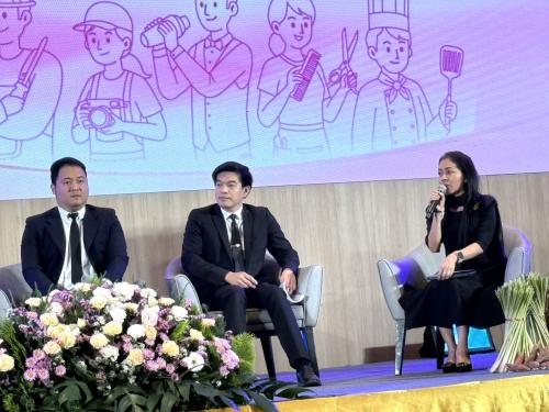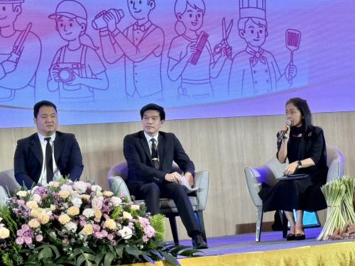 🔹 ในการนี้ อธิบดีกรมการพัฒนาชุมชน มอบหมายให้ นางพนารัตน์ มาตย์สมบัติ ผู้อำนวยการกลุ่มงานส่งเสริมผู้นำชุมชนและองค์กรชุมชน ร่วมพิธีเปิดฯ และร่วมเสวนาในหัวข้อ "การพัฒนาเด็กและเยาวชนด้านอาชีพ"