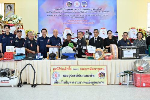 กรมการพัฒนาชุมชน ร่วมกับ มูลนิธิป่อเต็กตึ๊ง มอบวัสดุอุปกรณ์สนับสนุนอาชีพแก่ครัวเรือนยากจนในพื้นที่จังหวัดสุราษฎร์ธานี