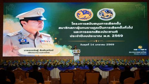 วันที่ 14 มกราคม 2569 เวลา 09.00 น. ณ ห้องรอยัล จูบิลี่ บอลรูม อิมแพค อารีน่า เมืองทองธานี อำเภอปากเกร็ด จังหวัดนนทบุรี นายสยาม ศิริมงคล อธิบดีกรมการพัฒนาชุมชน มอบหมายให้ นายวรงค์ แสงเมือง รองอธิบดีกรมการพัฒนาชุมชน เข้าร่วมการสัมมนาเตรียมความพร้อมในการสนับสนุนการเลือกตั้งสมาชิกสภาผู้แทนราษฎรในการเลือกตั้งทั่วไป และการออกเสียงประชามติ ประจำปีงบประมาณ พ.ศ. 2569 เพื่อรับทราบแนวทางการดำเนินงาน การบูรณาการความร่วมมือ และการกำหนดบทบาทหน้าที่ของหน่วยงานภาครัฐที่เกี่ยวข้องให้เป็นไปอย่างมีประสิทธิภาพ ถูกต้องตามกฎหมาย และเกิดความพร้อมในทุกระดับพื้นที่