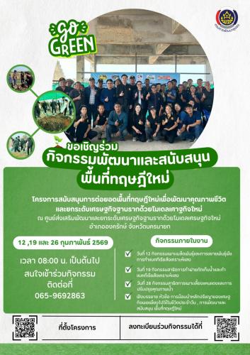 ในโอกาสนี้จึงขอประชาสัมพันธ์เชิญชวนผู้ที่สนใจสมัครเข้าร่วมกิจกรรมพัฒนาและสนับสนุนพื้นที่ทฤษฎีใหม่ ภายใต้โครงการสนับสนุนการต่อยอดพื้นที่ทฤษฎีใหม่ เพื่อพัฒนาคุณภาพชีวิตและยกระดับเศรษฐกิจฐานรากด้วยโมเดลเศรษฐกิจใหม่ ในวันที่ 12 , 19 และ 26 กุมภาพันธ์ 2569 ณ ศูนย์ส่งเสริมพัฒนาและยกระดับเศรษฐกิจฐานรากด้วยโมเดลเศรษฐกิจใหม่ อำเภอองครักษ์ จังหวัดนครนายก เวลา 08.00 น. เป็นต้นไป โดยสามารถลงทะเบียนได้ที่ QR code ที่แนบมาพร้อมนี้ และผู้ที่สนใจเข้าร่วมกิจกรรมจะต้องเตรียมตัวให้พร้อมสำหรับกิจกรรมกลางแจ้ง โดยสามารถสอบถามข้อมูลเพิ่มเติมได้ที่ 065-969-2863