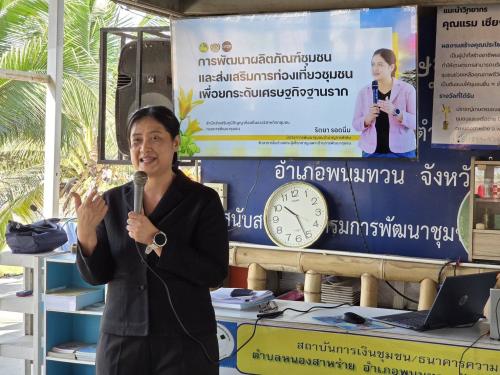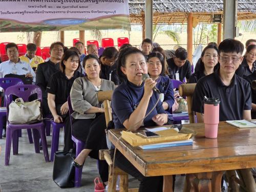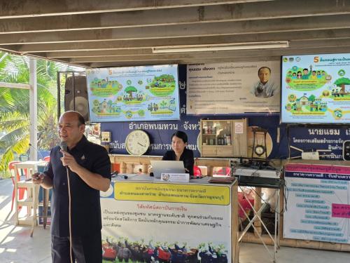 นอกจากนี้ ในช่วงบ่าย เป็นการบรรยาย เรื่อง บทบาทกรมการพัฒนาชุมชนกับการสนับสนุนโรงเรียนเศรษฐกิจพอเพียง โดยนางสาวนิภา ทองก้อน ผู้อำนวยการสำนักเสริมสร้างความเข้มแข็งชุมชน มีเนื้อหาเกี่ยวกับ กรมการพัฒนาชุมชนที่มีบทบาทสำคัญในฐานะ "โซ่ข้อกลาง" ที่ช่วยในการเชื่อมโยงภูมิปัญญาท้องถิ่นและปราชญ์ชาวบ้านเข้าสู่การยกระดับศูนย์เรียนรู้ฯ ให้กลายเป็นโรงเรียนเศรษฐกิจพอเพียง เพื่อถ่ายทอดทักษะอาชีพและการประยุกต์ใช้หลักปรัชญาของเศรษฐกิจพอเพียงอย่างเป็นรูปธรรม พร้อมทั้งสนับสนุนให้โรงเรียนเป็นศูนย์เรียนรู้ต้นแบบที่ขยายผลความพอเพียงกลับสู่ครอบครัวและชุมชน ผ่านกิจกรรมสร้างความมั่นคงทางอาหารและการสร้างสัมมาชีพ เพื่อให้ทั้งโรงเรียนและชุมชนรอบข้างเติบโตและพึ่งพาตนเองได้อย่างยั่งยืนไปพร้อมกัน ต่อด้วยการบรรยาย เรื่อง การเสริมสร้างเครือข่ายและบูรณาการงานพัฒนาชุมชนในพื้นที่ โดย นายดำรงค์ มากระจัน พัฒนาการจังหวัดกาญจนบุรี มีเนื้อหาเกี่ยวกับ การใช้เทคนิค หรือ วิธีการในการสร้างเครือข่ายและบูรณาการหน่วยงาน หรือ ทุนชุมชนที่มีอยู่ในพื้นที่ในการขับเคลื่อนการดำเนินงานโรงเรียนเศรษฐกิจพอเพียงให้มีประสิทธิภาพและเกิดความยั่งยืน รวมไปถึงบทบาทของสำนักงานพัฒนาชุมชนจังหวัด หรือ อำเภอ ในฐานะกลไกสนับสนุนการขับเคลื่อนกิจกรรมโรงเรียนเศรษฐกิจพอเพียงในพื้นที่ ในการให้ความช่วยเหลือทั้งด้านวิชาการ การฝึกอบรม และการจัดกิจกรรมส่งเสริมการเรียนรู้ รวมถึงการสนับสนุนทรัพยากร งบประมาณ และการประสานงานให้โรงเรียนเศรษฐกิจพอเพียงสามารถดำเนินงานได้อย่างมีประสิทธิภาพ อีกทั้งการส่งเสริมการติดตามและประเมินผลการดำเนินงานโรงเรียนเศรษฐกิจพอเพียงอย่างต่อเนื่อง เพื่อให้เกิดการปรับปรุงและการพัฒนาการดำเนินงานในการตอบสนองต่อความต้องการของพื้นที่อย่างแท้จริง รวมไปถึงการบรรยาย เรื่อง การเสริมสร้างความเข้มแข็งตามหลักปรัชญาของเศรษฐกิจพอเพียง โดยนายสุรศักดิ์ แหล่งหล้า ผู้อำนวยการกลุ่มงานส่งเสริมการบริหารจัดการชุมชน มีเนื้อหาเกี่ยวกับ ความหมายและหลักการของปรัชญาเศรษฐกิจพอเพียงสำหรับทำความเข้าใจแนวคิดพื้นฐาน หลักการสำคัญ และการประยุกต์ใช้ในระดับบุคคล ครอบครัว และชุมชน องค์ประกอบของชุมชนเข้มแข็ง วิเคราะห์โครงสร้าง ความสัมพันธ์ และบทบาทของผู้นำชุมชนในการขับเคลื่อนการพัฒนาอย่างยั่งยืน การสร้างและพัฒนาเครือข่ายความร่วมมือ วิธีการสร้างความร่วมมือระหว่างภาครัฐ เอกชน และประชาชน เพื่อเสริมสร้างศักยภา