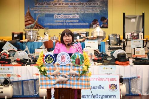 นายชัยวัฒน์ ชื่นโกสุม อธิบดีกรมการพัฒนาชุมชน มอบหมายให้ นางนวลจันทร์ ศรีมงคล ผู้ตรวจราชการกรมการพัฒนาชุมชน เป็นผู้แทนกรมการพัฒนาชุมชน พร้อมด้วย นางสาวนิภา ทองก้อน ผู้อำนวยการสำนักเสริมสร้างความเข้มแข็งชุมชน และคณะ ร่วมมอบวัสดุอุปกรณ์สนับสนุนการประกอบอาชีพให้แก่ครัวเรือนเป้าหมายของจังหวัดขอนแก่น โดยมีครัวเรือนรับมอบวัสดุอุปกรณ์ประกอบอาชีพ ภายใต้บันทึกข้อตกลงความร่วมมือในการแก้ไขปัญหาความยากจนเชิงบูรณาการ ระหว่าง กรมการพัฒนาชุมชน กระทรวงมหาดไทย กับ มูลนิธิป่อเต็กตึ๊ง ระยะที่ 3 ในพื้นที่ภาคตะวันออกเฉียงเหนือ จังหวัดขอนแก่น จำนวน 25 ครัวเรือน โดยมี คุณสุรพงษ์ เตชะหรูวิจิตร กรรมการและรองเลขาธิการฯ มูลนิธิป่อเต็กตึ๊ง และคณะผู้บริหาร เป็นผู้แทนจากมูลนิธิป่อเต็กตึ๊ง
